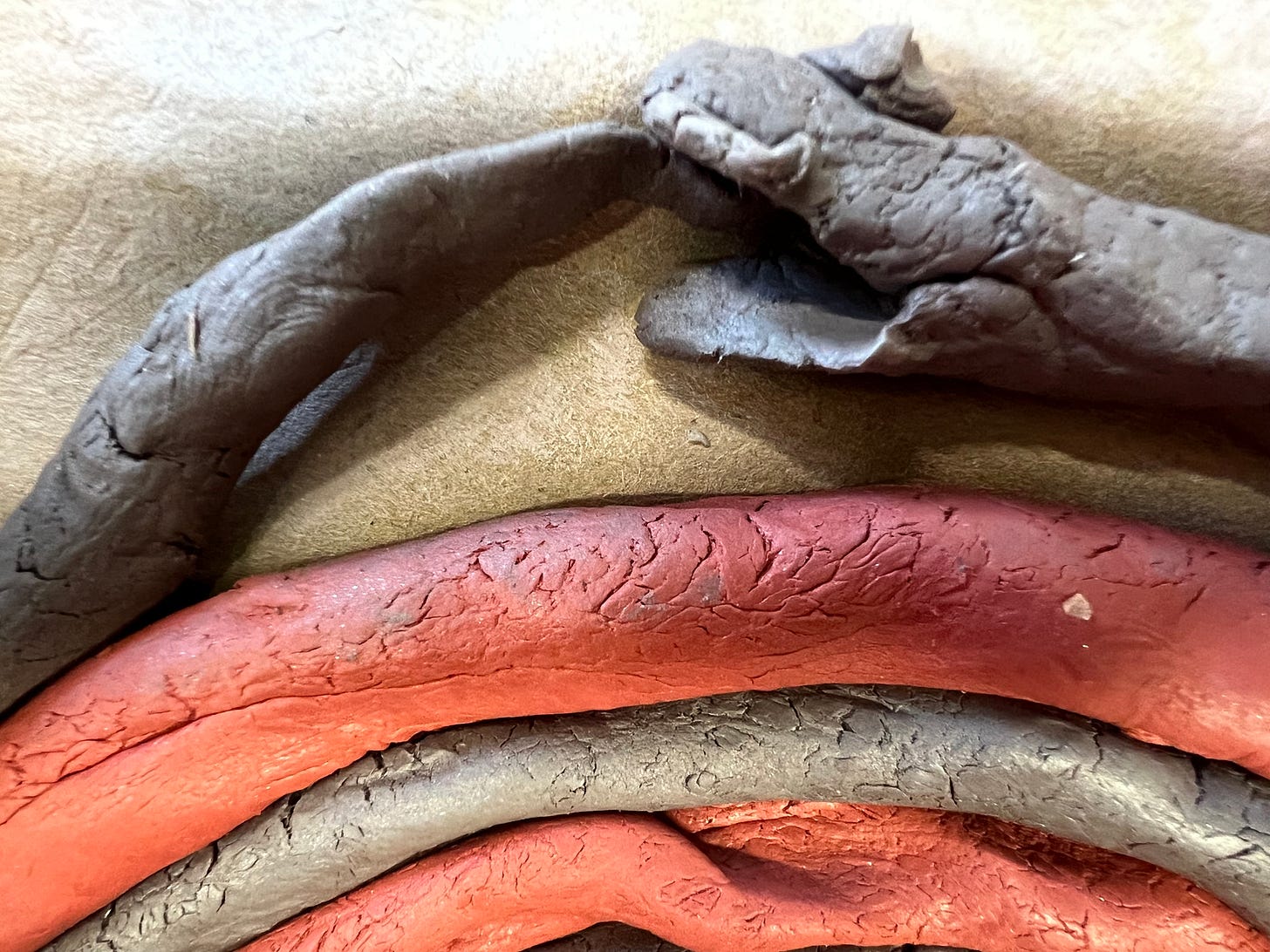 In the high-sky heat, alighting from a bus, a stranger presses himself against my bag, violence in his eyes. I feel that something has happened and discover my phone has gone. An abrupt twist. A tale going into a wyvern’s mouth. A phone, a camera, photos, memories, apps, maps, slipping away. I head towards the circular Colosseum and stroll down to Saint Clement Basilica to see the lasagna, the layers of time, the mosaic-ed Basilica, ancient Mithraeum temple, first century Roman villa with bubbling spring. The man who sells the ticket to the excavated underground wears a Borromean knot tattooed on his arm. He explains that his family hark from a small place in Ireland, the design, a connection to his roots. I share that I have Irish ancestry too and glimpse a tattoo on the inside of his arm, and there it is, the ouroboros. Layers of body, mind and spirit, human, interconnect within layers of buildings, nonhuman. I tell him that I love the ouroboros, and he smiles, and I smile, and we are beaming into our shared smiles, threads of yuan fen. In his eyes, I sense that once our ancestors met within inches of each other, that he is me and I am him.
